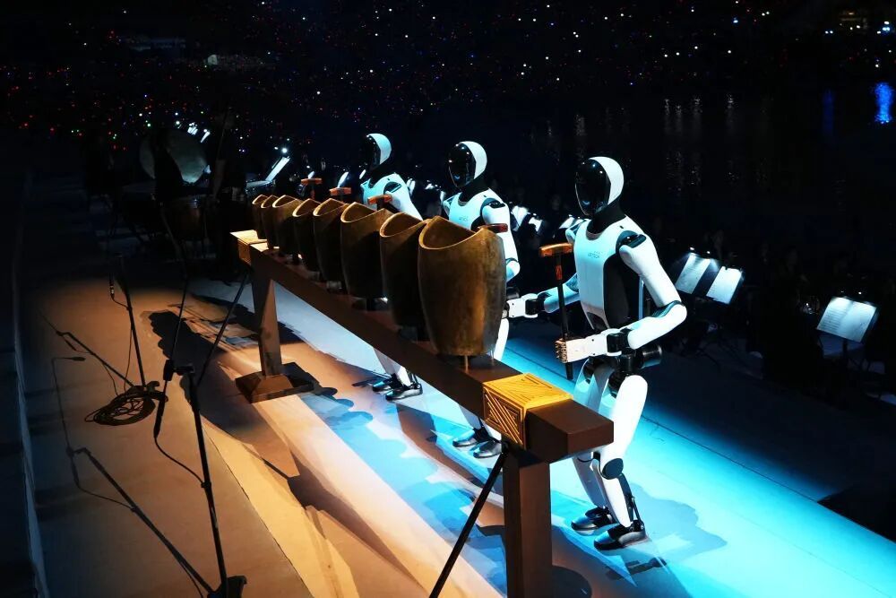 智能机器人轻敲“青铜句鑃”