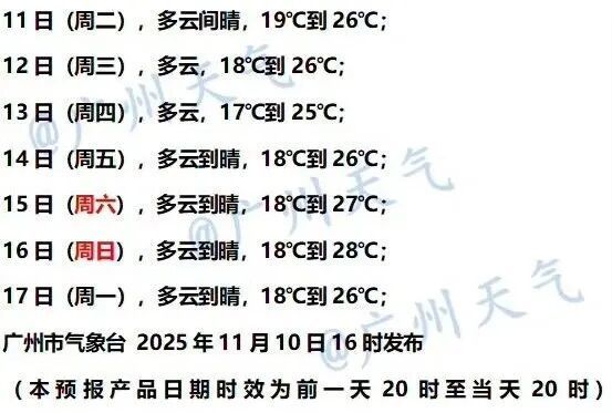 据@广州天气:新的一周,天气总体平稳,气温小幅波动,其中10日—13日受到弱冷空气和台风外围环流影响,风力加大,体感会凉一些,大家可以准备防风的衣物;14日-16日多云到晴,白天最高气温逐渐回升。