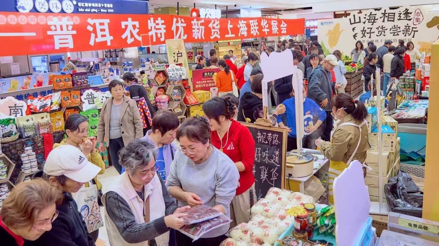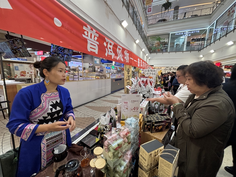 “阿姨,来尝尝咖啡果皮茶,甜甜的。”“咦,没有咖啡味,反而有水果的甜香。”今天上午,百联中环B1层中庭人声鼎沸,热闹的市集上既能品尝到普洱茶的醇厚,也能闻到新疆果干的香甜,还有软糯的东北鲜玉米,一场跨越山海的风味旅程在这里开启。