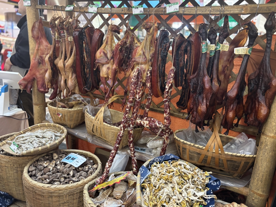 新民晚报记者在现场看到,除了云南,展会还集结了来自上海、安徽、新疆、吉林等全国优质产区的特色农产品,打造一场集采购、品鉴、互动于一体的品质消费盛会。新疆的蜜薯绵软无筋、甜度高,泽拉木夏系列果干——古树杏干、无核西梅干、红香妃葡萄干等,以干净配料与纯粹果香吸引众多顾客;安徽田园徽州则带来古法腌制的刀板香、酱板鸭、火腿心等多款徽州传统美食,咸香醇厚,回味悠长。东北黄糯鲜玉米产自北纬43°黄金玉米带,黑土滋养、阳光充沛,从采摘到加工仅3小时,牢牢锁住鲜度。