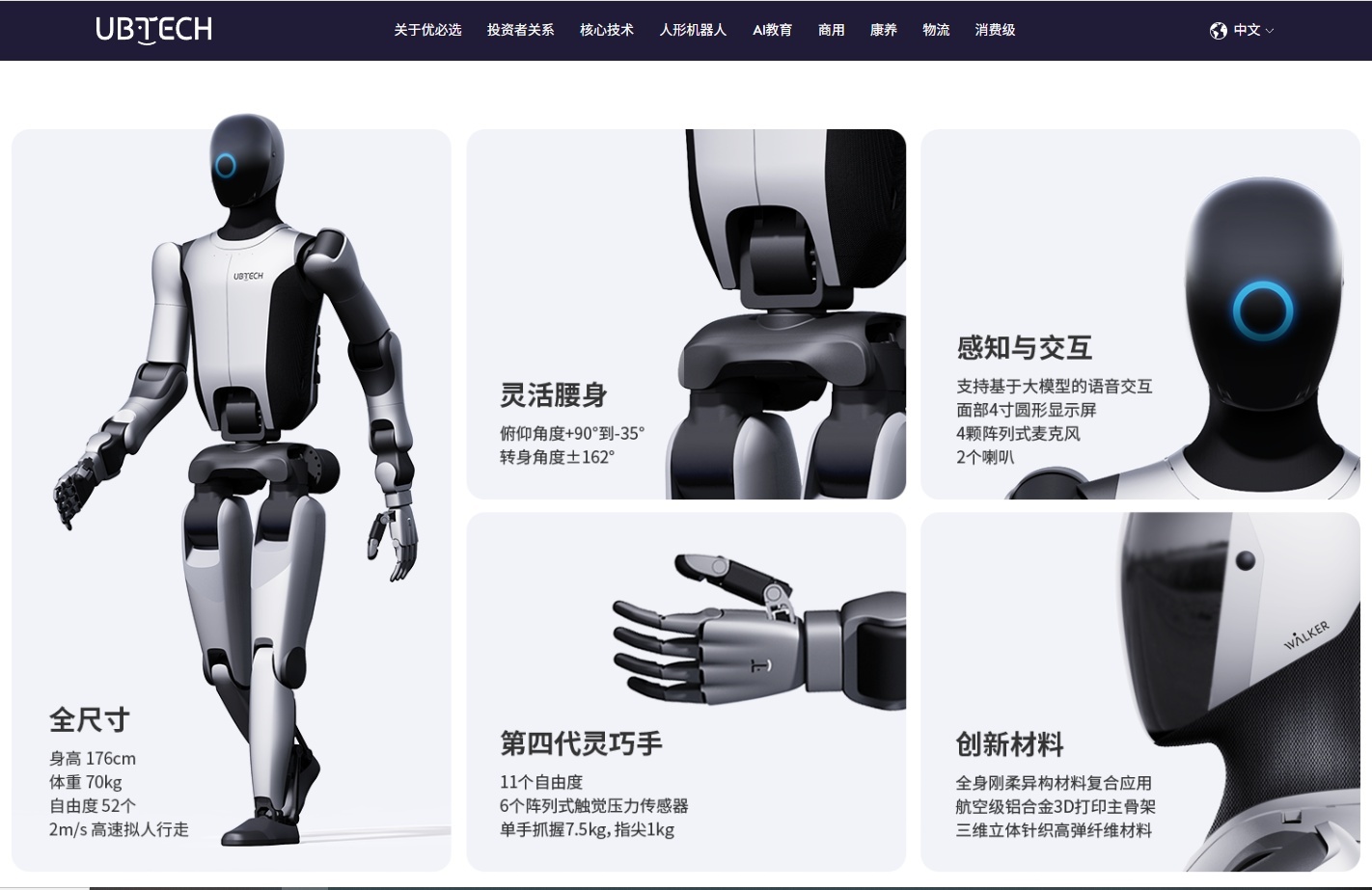 优必选官网显示,Walker S2是优必选自主研发的全自主具身智能人形机器人,其身高176厘米,重70公斤,全身共有52个自由度。它不仅拥有全球首创人形机器人热插拔自主换电系统,能够3分钟自主换电,还搭载自研的全球首个专用于工业人形机器人本体的智能体技术Co-Agent,实现单机自主和群体协同的智能化突破,被称为“永不停机的新质生产力”。