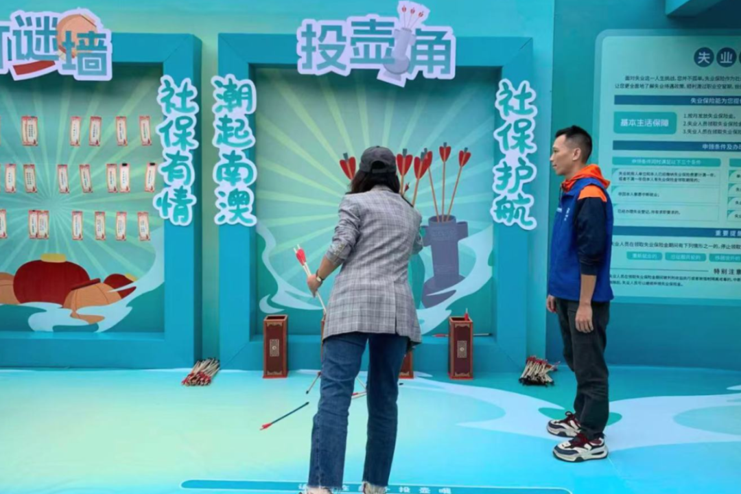 市社保局走进粤东技师学院,通过创新构建“政校银”三方协同机制,精准对接青年学子需求,以“沙龙+公开课”深化政策解读,结合“解惑转转转”“谣言粉碎机”等互动游戏,将社保热点知识以寓教于乐的方式直接输送给青年学子。同时,通过融入非遗文化元素,让社保政策在文化浸润中深入人心,形成“政策引导—服务体验—文化共鸣”的传播闭环。