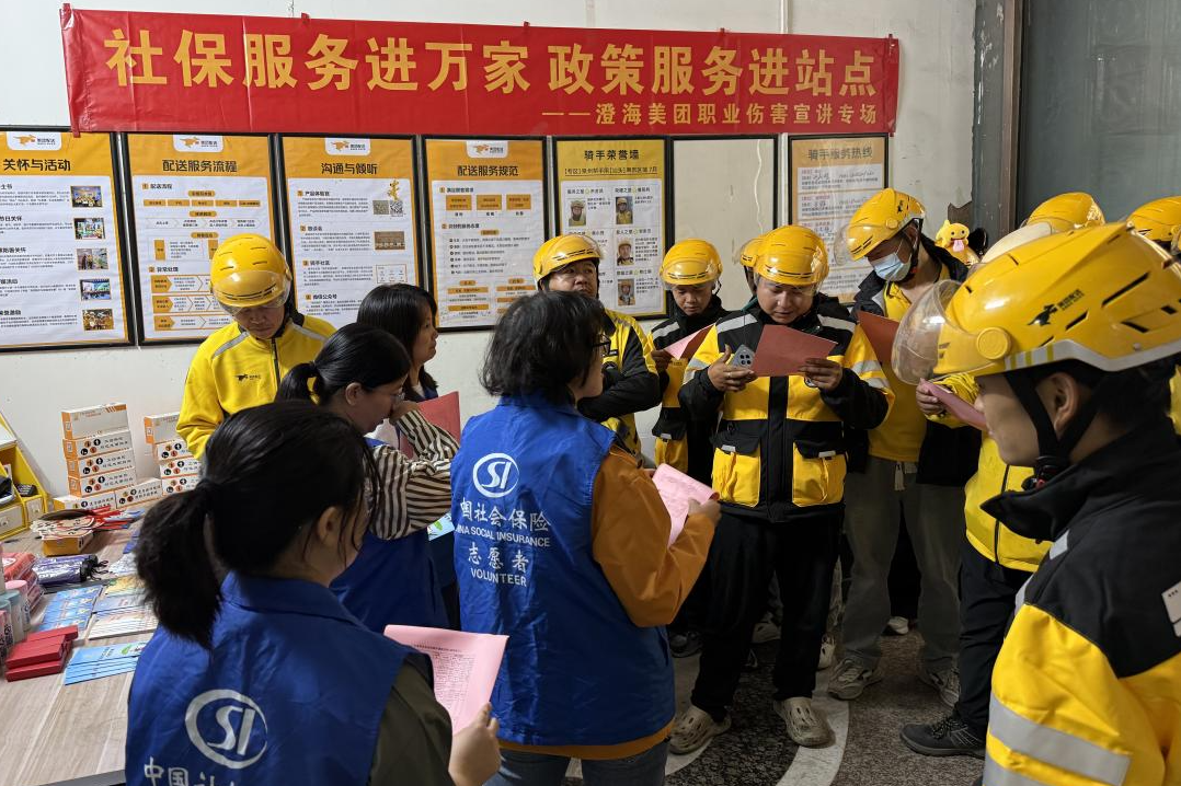 市社保局澄海分局主动服务新就业形态劳动者等群体,在美团业务站点举办宣传咨询活动。