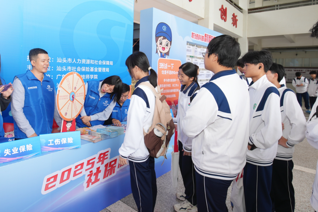 市社保局金平分局走进汕头市卫生学校开展“社保服务进校园”活动,为即将步入职场的学生上好“劳动保障第一课”。